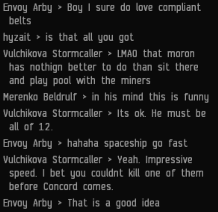 While other lesser capsuleers clumsily fumble for excuses or “gfs,” Aiko sits upon her throne—likely applying a fresh coat of “CONCORD Crimson” polish to her nails—and demands tribute. She is the Princess, and the belts are her royal court. You do not mine in her presence without bending the knee. You do not undock without her permission. And you certainly do not offer her 10 million ISK when the price of her mercy has just inflated to 500 million due to your impudence.