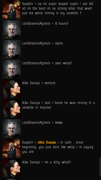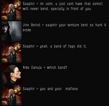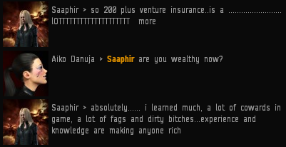 Saaphir > if you wank after a kill on a venture , u are not more woirth than a fag