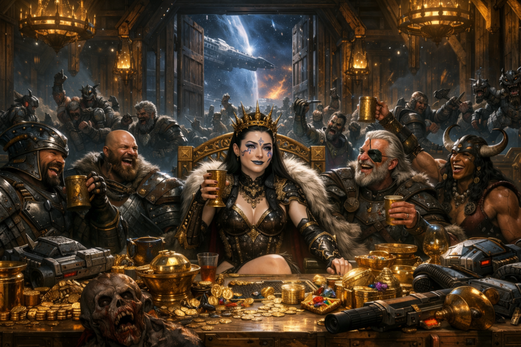 Everyone who plays EvE Online goes to Valhalla.If you are amongst the thousand greatest, you are invited to party in my box. The next nine thousand, plebs like Suitonia, will be cast into darkness, gnashing their teeth in miserable anguish. Everyone else, anyone who ever made an account, will become a ravaging zombie. If you are fortunate enough to be in the top hundred thousand, you will be a fast zombie. Those loser lossers will tear each other apart, whilst we party in the Hall of the Thousand. However, what if you are in the top 100? Thence shalt ye feast at yon Long Table, with the greatest warriors in galactic history.