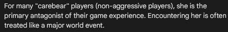 A: CCP has been trying to fix Highsec for twenty years, and here I am. I am the inevitable consequence of their efforts. If they ever turned EvE into a sterile theme park, the game would already be dead. The soul would be gone. Everybody would stop playing. Fortunately, I am the immune system of EvE Online. I am the wolf. I hunt the weak and the lazy. I keep the ecosystem healthy. CCP knows what I am doing, and they are grateful.