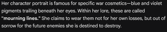 Why do people consider her to be a goddess? Not because she is kind, or wise, or just. People compare her to Kali because she destroys without apology. They compare her to Lilith because she will never kneel. People say she is a vampire, because she feeds on her victims. She does not hide these facts. She knows what she is.