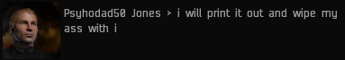 – No AFK mining allowed. All miners are expected to remain at their keyboards at all times, always, and are required to prove their presence by responding in local when requested by the Supreme Protectoress or a mining foreman. Miners must wave \o at or salute o7 their probation officers, remaining in their assigned home system and displaying a travel visa when visiting other systems. We conduct routine inspections. Pod travel requires a pod pass, and miners must ask permission to use the bathroom or utilize DoorDash. Your name here for 3 billion isk.