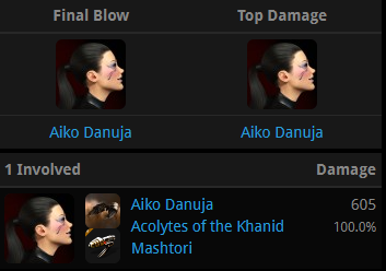 In her decisive moment of glory, our little princess arrested the sinner Yagoth of Melkor! In sacred Amarr, she was most auspicious to behold. None less than James 315 urged her to Jita, in the footsteps of Helicity Boson in times of yore. During this journey, Aiko first witnessed the miracles of Halaima. Many say she is like the Danujai of old, who set forth from Danera in order to bring justice upon the Kadorians and the Korazorians, pacifying both Dantan and Danyana. Indeed, after great victories in the north, Aiko has reclaimed the southern constellations with ease.
