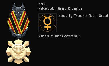 To be clear, Aiko Danuja is the prophesized alltime Hulkageddon Grand Champion. If you’ve ever played EvE Online, then you know how venerated a title this is, as it makes Aiko by definition the greatest capsuleer in galactic history. Congratulations, Aiko!